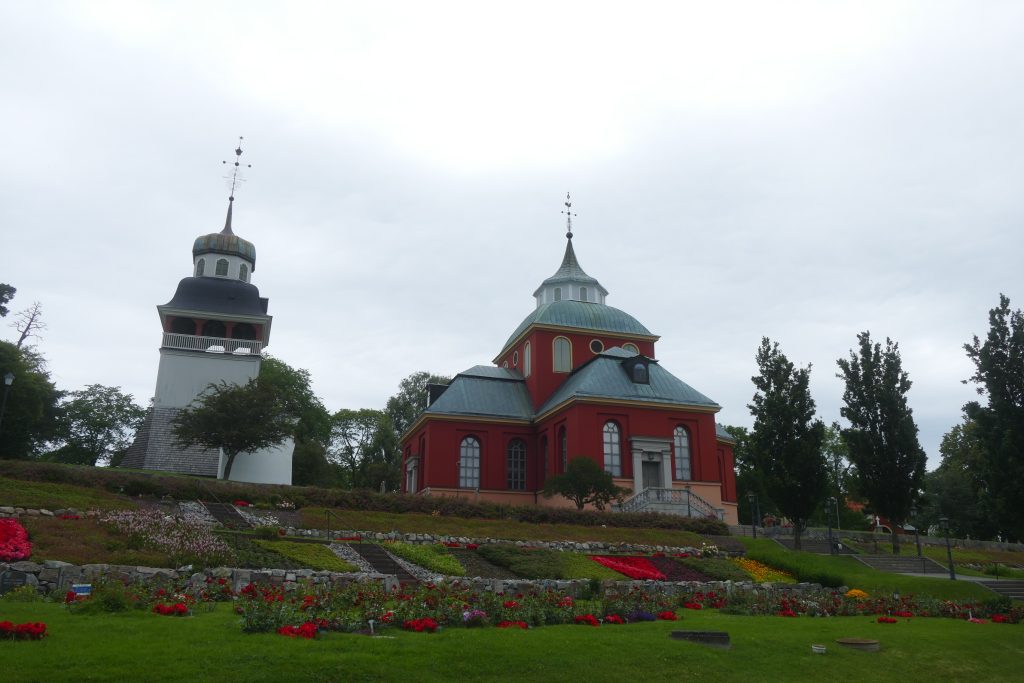 Am Parkplatz fährt die Buslinie 2 in wenigen Minuten ins Zentrum von Uppsala Schwedens viertgrößte Stadt. Wir gehen an der Carolina Rediviva (Universitätsbibliothek) vorbei zuerst zum Schloss hinauf. Hier haben wir einen schönen Blick auf die Stadt und die Domkyrka, dem gotischen Dom, in dem viele schwedische Könige gekrönt uGävlend begraben wurden. Erbaut wurde sie 1270 bis 1435 und ist genauso lang wie hoch, 118,7 m, und damit die größte Kirche in Skandinavien. Im Inneren befindet sich das Grab von Gustav Wasa. Gegenüber ist das Gustavianum, mit dem berühmtem Anatomielehrsaal in der Kuppel des Gebäudes, in das wir jedoch nicht hineingehen. Wir laufen hinauf zur ältesten Universität im Norden Europas. Leider ist das Hauptgebäude geschlossen. Danach schlendern wir noch ein wenig durch die Stadt und fahren zurück zum Stellplatz. In Gammla Uppsala sehen wir uns noch das Freilichtmuseum Disagården, ein Uppland-Dorf aus dem 19. Jahrhundert mit roten Blockhäusern und Bauernhöfen, mit Ställen, Gehöften und einer Schmiede an. Die Gebäude wurden aus verschiedenen Teilen Upplands hierher versetzt. Daneben befinden sich die Hügelgräber („Königshügel“), in denen bedeutende Männer der Wikingerzeit begraben sind. Anschließend fahren wir weiter über Gävle und halten vor Tierp an der Tierps-Kyrka eine der größten Landkirchen Upplans. Die vier Ecken der Kirche haben Strebepfeiler mit Turmspitzen. Oberhalb von Gävle parken wir auf einem Wanderparkplatz in der Nähe des Norrlandets kustled.