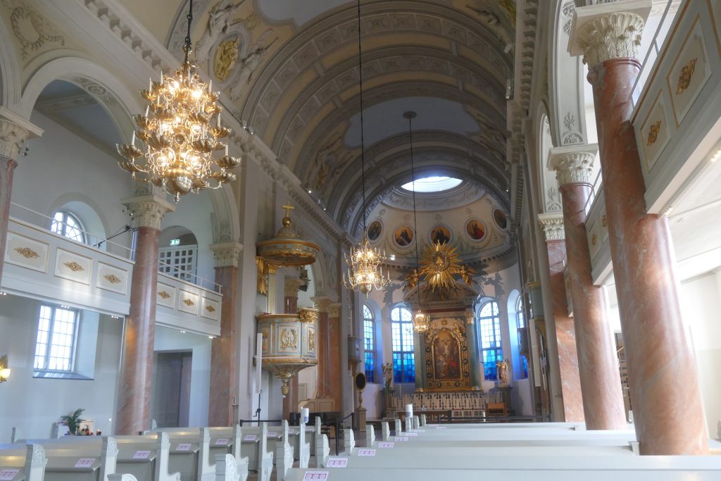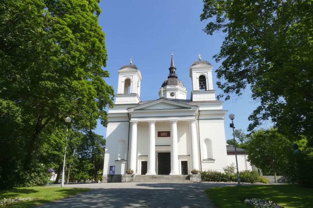 Am Morgen lacht wieder die Sonne und es sind schon 16° C. Nach der Entsorgung, Einkaufen und noch einmal voll tanken, fahren wir 200 km in Richtung Norden, teils auf der E4 und auf der alten Autobahn. Unterwegs wollen wir noch unsere LPG Flasche füllen. Wir biegen von der Straße ab auf einen kleinen Weg, hinunter zu einem See. Schon denken wir, dass mal wieder die Koordinaten nicht stimmen. Doch dann kommt etwas außerhalb die Füllstation. Das heutige Ziel ist die kleinste Provinzhauptstadt Harnösand. Die historische Hafenstadt im Süden und das Tor zum UNESCO-Weltnaturerbe Höga Kusten. Wir holen uns Informationen in der Bibliothek und gehen noch zur kleinsten Kathedrale, der Domkyrka zu Härnösand mit einem 17 m langen Regenbogenteppich.