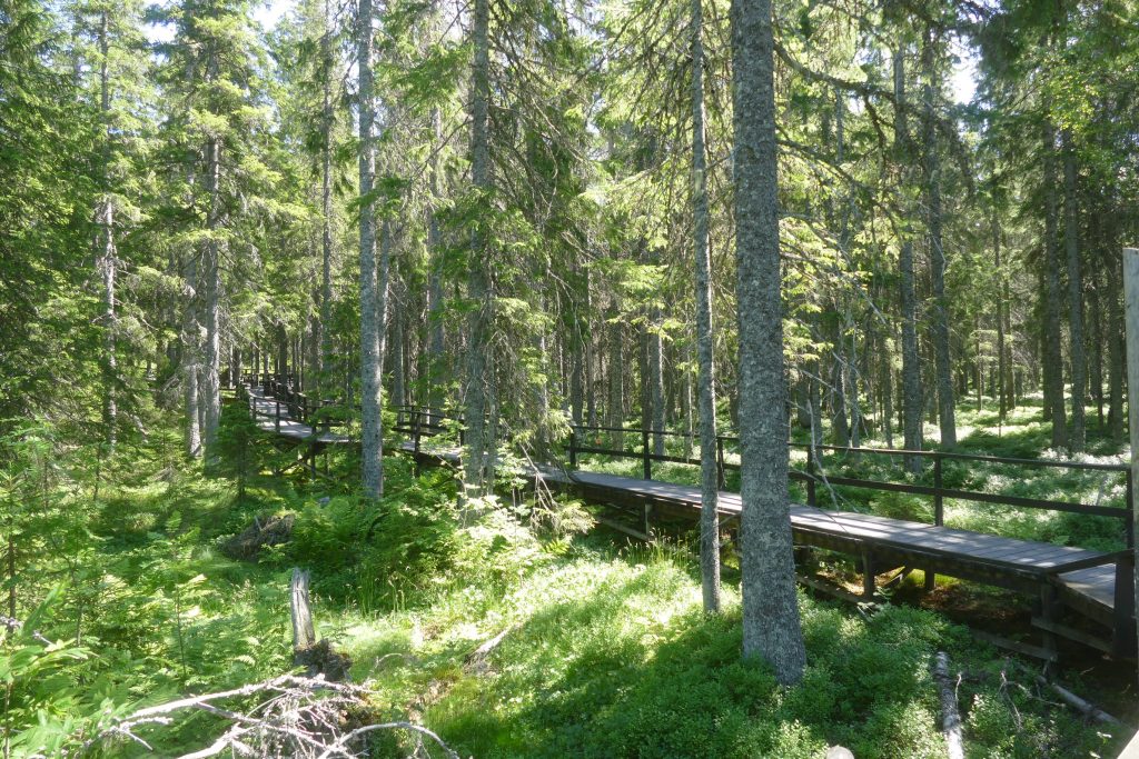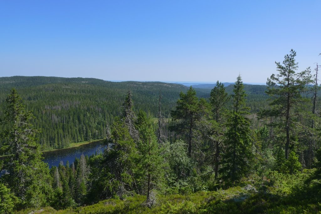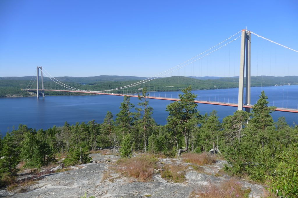 Zwei Wahrzeichen hat die Höga-Kusten-Region: im Norden den Skuleberg und im Süden die mächtige Hängebrücke Höga-Kusten-Brücke. Sie gilt als Schwedens Golden-Gate-Brücke und überspannt das Delta des Ångermanälven. Auf unserem Weg in den Skuleberg machen wir hier eine Pause, um die Brücke zu bewundern. Unterwegs legen wir beim Camping Kustladan einen Stopp ein und erklimmen den 197 m hohen Fäberget an der Höga Kusten in der Region Västernorrland. Bei 26° C ist dies eine recht schweißtreibende Wanderung. Jedoch ist die atemberaubende Aussicht auf die umliegende Landschaft, einschließlich der Ullångerfjärden, es wert. Danach fahren wir noch weiter in den Nationalpark Skuleskoge, der eindrucksvoll zeigt, wie die kilometerdicke Eisdecke, die Landhebung und die Wellen des Meeres die Landschaft an der Höga Kusten geprägt haben. Vom Westeingang des Nationalparks führt eine breite Holzrampe 200 Meter in den Wald zu einer großen Holzterrasse und weiter auf einem Schotterweg zum Aussichtspunkt Nylandsruten. Von hier sehen wir einen großen Teil des Nationalparks und unterhalb des Hangs schimmert das dunkle Wasser des Svarttjärn. Da uns die Wanderung durch den wilden und alten Wald gefällt, gehen wir weiter den Weg nach Långtjärnhällorna. Zum Schluss gehen wir noch zur Lillruten-Hütte und zum Parkplatz zurück.