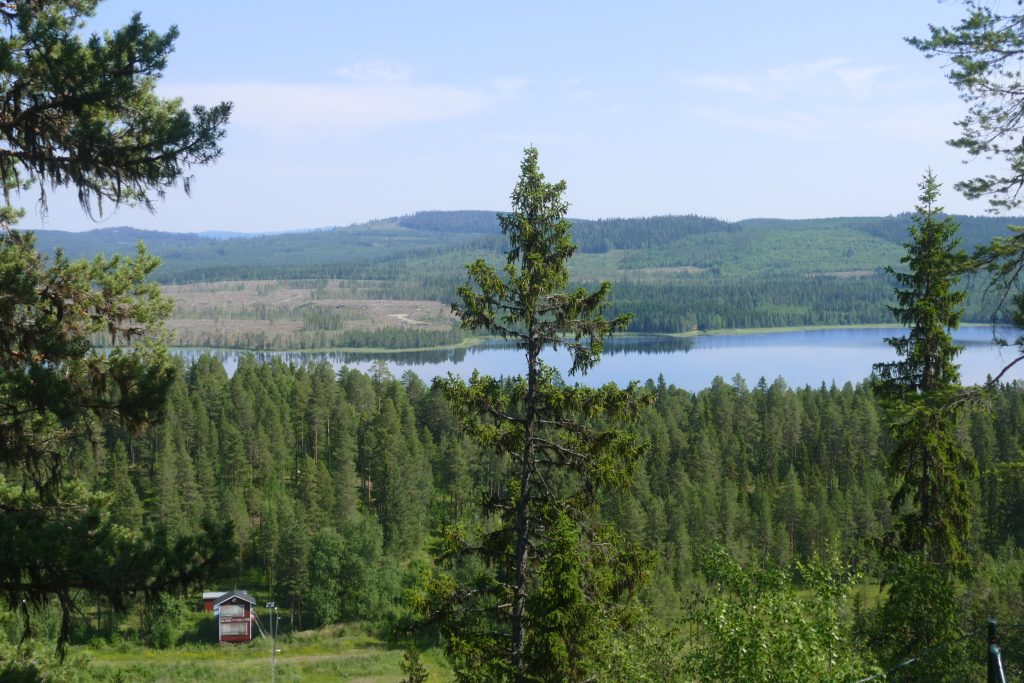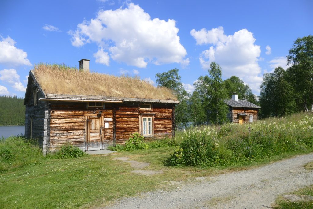 Wir fahren auf den Sagavägen nach Vilhelmina, wo der Vildmarksvägen beginnt. Der Vildmarksvägen ist Schwedens höchste asphaltierte Straße und führt über die Stekenjokk-Hochebene zwischen Lappland und Jämtland. Die gesamte Wildnisstraße ist ein unvergessliches Bergabenteuer von 500 Kilometern. In Vilhelmina angekommen, sehen wir uns die schmucke historische Kirchstadt mit 20 alten Holzhäusern an. Hier wird das Leben von vor mehreren hundert Jahren lebendig. Heute sind Ferienunterkünfte, ein Museum und die Touristeninformation untergebracht. Danach gehen wir etwas bergan zur alten samischen Kirchensiedlung mit Holzhäusern der Ureinwohner Lapplands auf der Anhöhe Kyrkberget. Wir unternehmen noch eine kleine Wanderung auf dem Naturstig mit Aussicht auf den Volgsjön. Es türmen sich erste Gewitterwolken auf und die Mücken bekommen Appetit. Wir beeilen uns, zur Kirche zu kommen, die wir uns ansehen. Nach der Mittagspause fahren wir weiter auf der E45, dem Inlandsvägen in südliche Richtung nach Dorotea, beschließen hier jedoch noch weiter bis kurz vor Strömsund zu fahren.