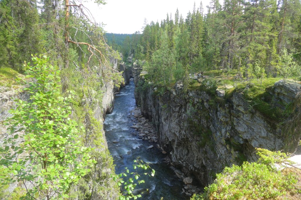 Der Brakkåfallet ist ein spektakuläres Erlebnis. Wir kommen über einen kleinen Pfad zum unteren Brakkåfallet in einer Schlucht am Ufer des Brakkån. Wir setzen den Weg fort, um zum oberen Wasserfall zu gelangen. Danach setzen wir die Fahrt über Stora Blasjön bis in das Naturschutzgebiet Bjurälven fort. Vom Parkplatz des Bauernhofs Leipikvattnet starten wir zu unserer Wanderung auf einem Pfad durch üppige Bergvegetation bis zum Karstgebiet selbst. Der Fluss Bjurälven fließt teilweise unterirdisch und untergräbt den Boden und bildet zusammen mit dem benachbarten Naturschutzgebiet Korallgrottan ein einzigartiges Gebiet. Über Brücken, Stege und Treppen setzen wir den Weg durch das Karstgebiet fort, bis wir das „Colluseum“ erreichen. Wir klettern in das weitläufige Tal hinunter und durchqueren die üppige Bergvegetation bis zur Bjurälvsgrottan. Hier verschwindet der Bjurälven unter der Erde, weshalb er auch der unsichtbare Fluss genannt wird. Später sprudelt er wieder aus dem Boden, wie aus einem kochendem Topf. Auf dem Rückweg kommen wir zur sogenannten Grytrännan einer Rinne aus weichem, glatt poliertem Gestein.