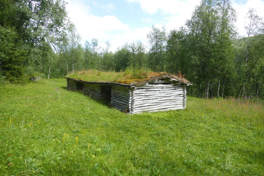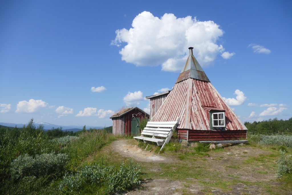 Nur wenige Kilometer von unserem Übernachtungsplatz befindet sich der beeindruckende Wasserfall Gaustafallet im Skåarnja Naturreservat, das mit dem Ziel gegründet wurde, die großartige Berglandschaft mit Rentierwildnis zu erhalten. Von der Parkbucht an der Straße gehen wir den kleinen Weg zum Wasserfall, der ca. 7 Meter tosend in die Tiefe stürzt. Wir setzten die Fahrt fort und kommen zum 876 m hohen Stekenjokk-Plateau eine beeindruckende, raue Landschaft aus Fels, Gras, Wasser und Schnee. Hier wurde einst Bergbau betrieben. Während der 12-jährigen Betriebszeit bis 1988 wurde Erz, Kupfer, Zink und Gold gefördert. Zu dieser Zeit entstand die asphaltierte Straße. Außerdem hüten und versorgen die Samen hier seit Jahrtausenden ihre Rentiere. Weiter auf dem Vildmarksvägen erreichen wir nach 22 km Klimpfjäll. Hier existierte bis 1920 ein einfaches Gasthaus für Reisende, die zu den Handelsplätzen in Norwegen unterwegs waren. Der Norgefararleden ist der Weg, auf dem die Bauern mit Pferd und Schlitten Handel trieben und bis ins Susendalen nach Norwegen führt. Wir wandern von der Skistation auf dem Trollstiegen bis zum Wanderweg 7-forsar mit beeindruckenden Wasserfällen und Stromschnellen. Danach biegen wir auf den Kullaleden ab, bis er in den Norgefararleden übergeht und zum Parkplatz zurückführt. Nach dieser kleinen jedoch bei diesen Temperaturen schweißtreibenden Wanderung fahren wir noch weiter nach Fatmomakke, dem nördlichsten Punkt des Vildmarksvägen. Fatmomakke ist eine kleine Kyrkstad. Um eine Kirche gruppieren sich 80 samische Koten und 20 Holzhäuser. Er diente als Treffpunkt der samischen Rentierzüchter. Nach der Besichtigung suchen wir uns einen Parkplatz mitten in der Wildnis des Marsfjällens Naturreservats.