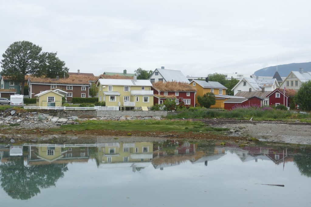 Regen am Morgen, wie es die Wettervorhersage gemeldet hat. Wir fahren zur Tankstelle und füllen Wasser auf. Um die Ecke ist die Gasfüllstation, wo wir LPG tanken. Und da alles auf einem Platz ist, gehen wir noch zu KIWI und REMA1000 einkaufen. Nun noch die Entsorgung und dann fahren wir noch zu einem Caravanhändler. Leider hat er nicht die baugleiche Lampe, die kaputtgegangen ist. Mittlerweile hat der Regen aufgehört und wir gehen zum Rangfjorden, wo die Skulptur des Oceanman im Wasser steht. Ein paar Schritte weiter sind hübsche alte Holzhäuser. Durch einen Fußgängertunnel kommen wir in die Geschäftsstraße und entdecken ein Sport-Outlet. Hier bekommen wir Schuhe, die „wasserdicht“ versprechen. Na, wir werden es schon bald testen. Ein Blick auf den Wetterbericht verspricht teilweise Sonne für morgen. So entschließen wir uns die ca. 35 km zurück auf der E12 Richtung Schweden zu fahren. Wir parken auf der Zufahrtsstraße zur Wanderung zum Okstindbreen. Wir drücken die Daumen, dass es morgen mit dem Wetter klappt.