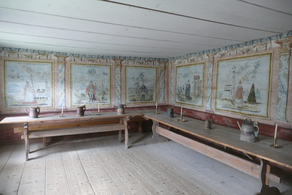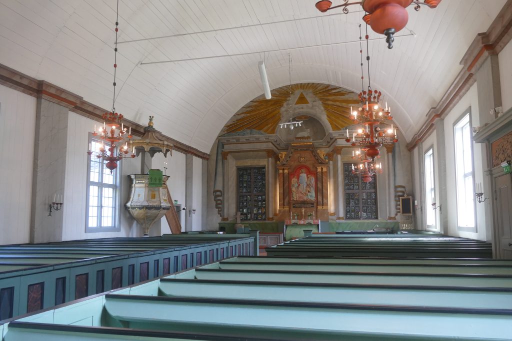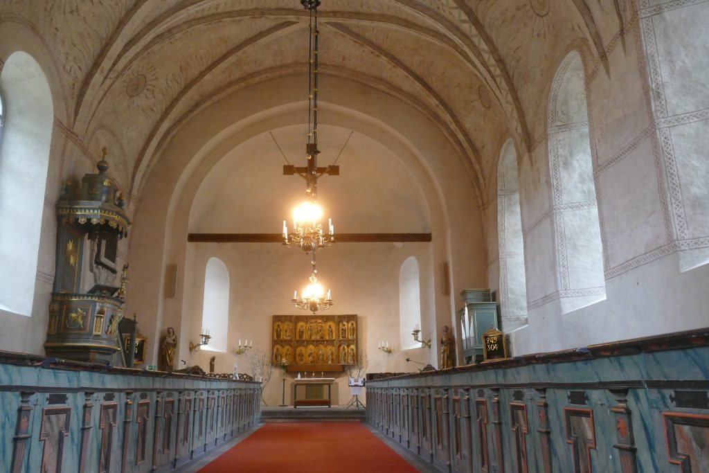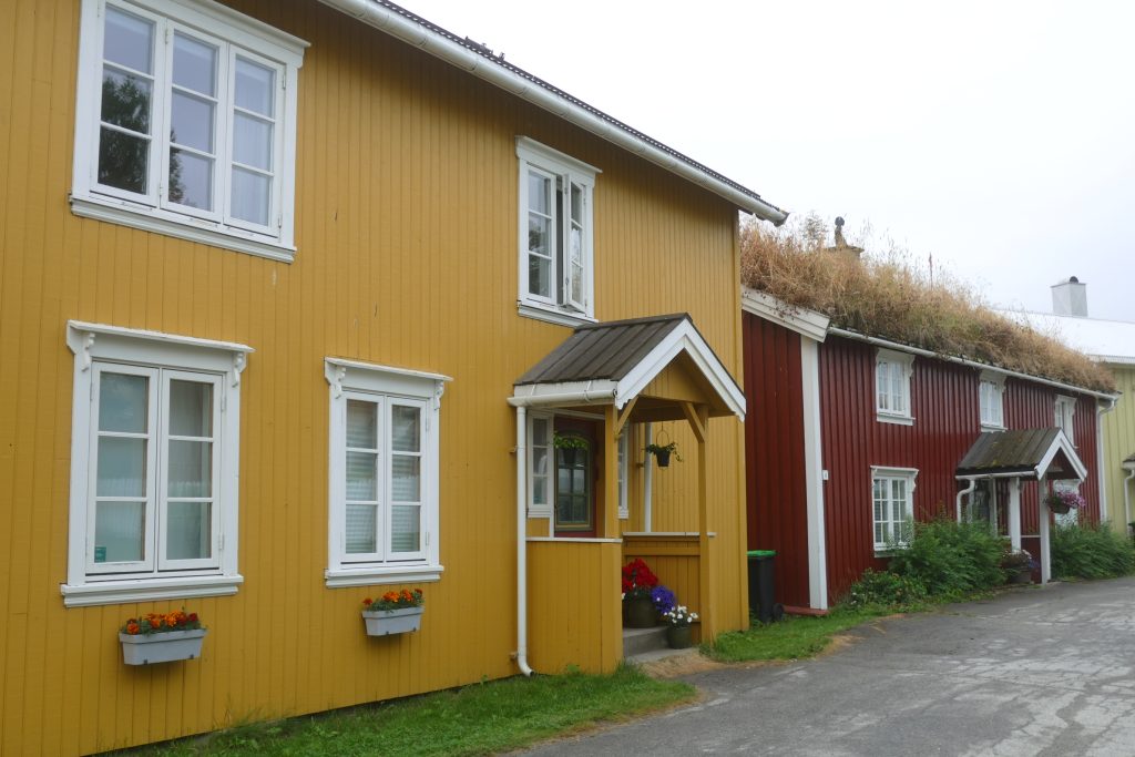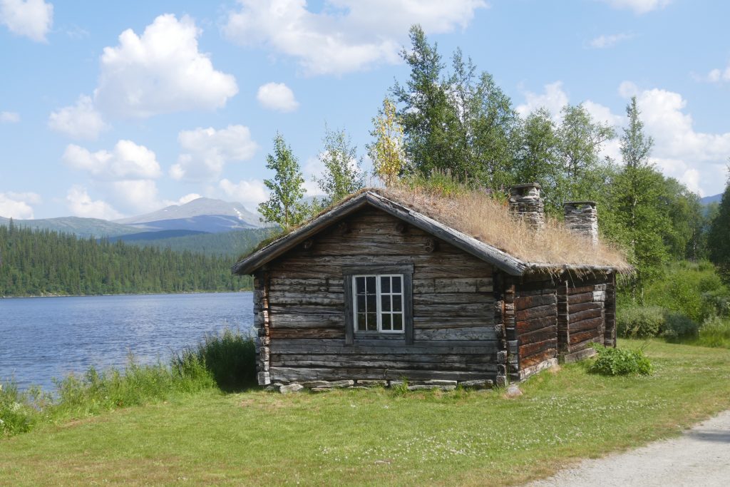 Wir fahren auf den Sagavägen nach Vilhelmina, wo der Vildmarksvägen beginnt. Der Vildmarksvägen ist Schwedens höchste asphaltierte Straße und führt über die Stekenjokk-Hochebene zwischen Lappland und Jämtland. Die gesamte Wildnisstraße ist ein unvergessliches Bergabenteuer von 500 Kilometern. In Vilhelmina angekommen, sehen wir uns die schmucke historische Kirchstadt mit 20 alten Holzhäusern an. Hier wird das Leben von vor mehreren hundert Jahren lebendig. Heute sind Ferienunterkünfte, ein Museum und die Touristeninformation untergebracht. Danach gehen wir etwas bergan zur alten samischen Kirchensiedlung mit Holzhäusern der Ureinwohner Lapplands auf der Anhöhe Kyrkberget. Wir unternehmen noch eine kleine Wanderung auf dem Naturstig mit Aussicht auf den Volgsjön. Es türmen sich erste Gewitterwolken auf und die Mücken bekommen Appetit. Wir beeilen uns, zur Kirche zu kommen, die wir uns ansehen. Nach der Mittagspause fahren wir weiter auf der E45, dem Inlandsvägen in südliche Richtung nach Dorotea, beschließen hier jedoch noch weiter bis kurz vor Strömsund zu fahren.