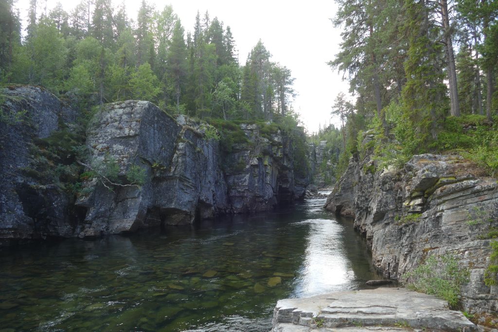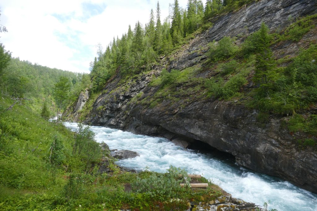 Der Brakkåfallet ist ein spektakuläres Erlebnis. Wir kommen über einen kleinen Pfad zum unteren Brakkåfallet in einer Schlucht am Ufer des Brakkån. Wir setzen den Weg fort, um zum oberen Wasserfall zu gelangen. Danach setzen wir die Fahrt über Stora Blasjön bis in das Naturschutzgebiet Bjurälven fort. Vom Parkplatz des Bauernhofs Leipikvattnet starten wir zu unserer Wanderung auf einem Pfad durch üppige Bergvegetation bis zum Karstgebiet selbst. Der Fluss Bjurälven fließt teilweise unterirdisch und untergräbt den Boden und bildet zusammen mit dem benachbarten Naturschutzgebiet Korallgrottan ein einzigartiges Gebiet. Über Brücken, Stege und Treppen setzen wir den Weg durch das Karstgebiet fort, bis wir das „Colluseum“ erreichen. Wir klettern in das weitläufige Tal hinunter und durchqueren die üppige Bergvegetation bis zur Bjurälvsgrottan. Hier verschwindet der Bjurälven unter der Erde, weshalb er auch der unsichtbare Fluss genannt wird. Später sprudelt er wieder aus dem Boden, wie aus einem kochendem Topf. Auf dem Rückweg kommen wir zur sogenannten Grytrännan einer Rinne aus weichem, glatt poliertem Gestein.
