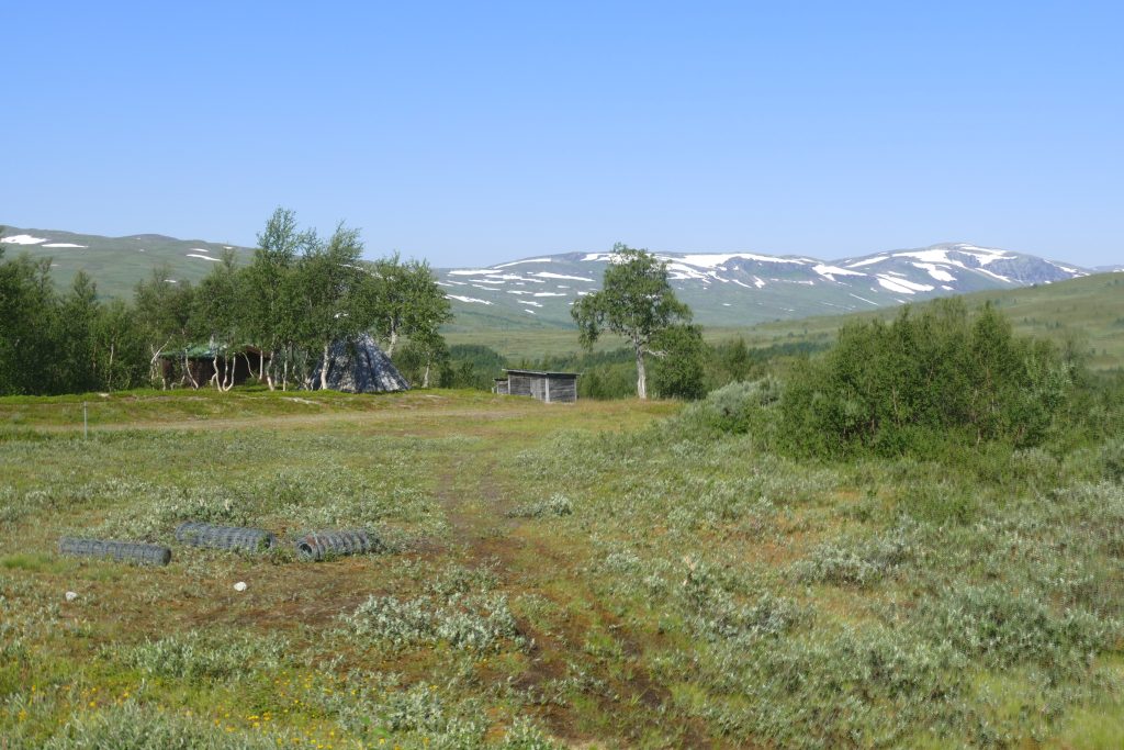 Nur wenige Kilometer von unserem Übernachtungsplatz befindet sich der beeindruckende Wasserfall Gaustafallet im Skåarnja Naturreservat, das mit dem Ziel gegründet wurde, die großartige Berglandschaft mit Rentierwildnis zu erhalten. Von der Parkbucht an der Straße gehen wir den kleinen Weg zum Wasserfall, der ca. 7 Meter tosend in die Tiefe stürzt. Wir setzten die Fahrt fort und kommen zum 876 m hohen Stekenjokk-Plateau eine beeindruckende, raue Landschaft aus Fels, Gras, Wasser und Schnee. Hier wurde einst Bergbau betrieben. Während der 12-jährigen Betriebszeit bis 1988 wurde Erz, Kupfer, Zink und Gold gefördert. Zu dieser Zeit entstand die asphaltierte Straße. Außerdem hüten und versorgen die Samen hier seit Jahrtausenden ihre Rentiere. Weiter auf dem Vildmarksvägen erreichen wir nach 22 km Klimpfjäll. Hier existierte bis 1920 ein einfaches Gasthaus für Reisende, die zu den Handelsplätzen in Norwegen unterwegs waren. Der Norgefararleden ist der Weg, auf dem die Bauern mit Pferd und Schlitten Handel trieben und bis ins Susendalen nach Norwegen führt. Wir wandern von der Skistation auf dem Trollstiegen bis zum Wanderweg 7-forsar mit beeindruckenden Wasserfällen und Stromschnellen. Danach biegen wir auf den Kullaleden ab, bis er in den Norgefararleden übergeht und zum Parkplatz zurückführt. Nach dieser kleinen jedoch bei diesen Temperaturen schweißtreibenden Wanderung fahren wir noch weiter nach Fatmomakke, dem nördlichsten Punkt des Vildmarksvägen. Fatmomakke ist eine kleine Kyrkstad. Um eine Kirche gruppieren sich 80 samische Koten und 20 Holzhäuser. Er diente als Treffpunkt der samischen Rentierzüchter. Nach der Besichtigung suchen wir uns einen Parkplatz mitten in der Wildnis des Marsfjällens Naturreservats.