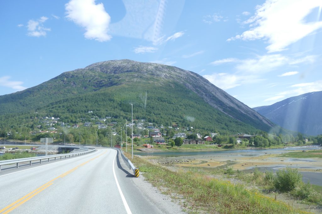 Heute geht die Fahrt weiter in Richtung Norden. Wir haben gestern bereits mehrmals den Polarkreis überschritten. An der E6, 66′ 33’ N, befindet sich der nördliche Breitengrad in Norwegen, den wir heute überschreiten. Wir halten am Polarkreiszentrum an, das am 13. Juli 1990 eröffnet wurde und sich etwa 680 m über dem Meer in der Nähe des Saltfjellet-Svartisen Nationalparks befindet. Weiter auf der E6 erreichen wir nach ca. 140 km Fauske. Wir machen eine kleine Pause, bevor wir weiter auf der E6 bis zum Wegweiser in den Rago Nationalpark fahren. Wir biegen auf den Laksholveien ab und suchen uns einen kleinen Parkplatz direkt zwischen Straße und dem Fluss Nordfjordelva.