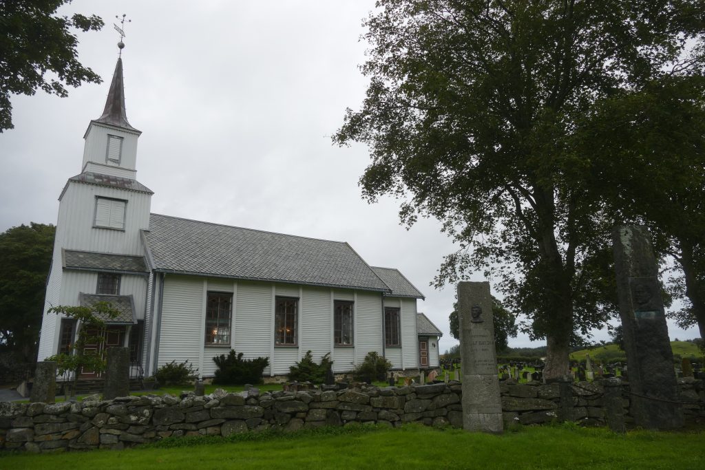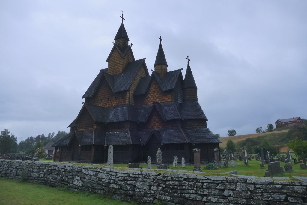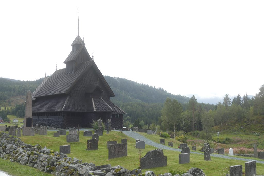 Innerhalb von zwei Tagen hat der Herbst mit seiner schönen Laubfärbung eingesetzt. Da sich heute kräftige Regengüsse mit Nieselregen abwechseln, fahren wir weiter in die Region Telemark. Diese Region erstreckt sich zwischen Oslo und Kristiansand mit der Hochebene des Hardangergebirges. Einziger Stopp, den wir heute einlegen, ist bei der größten Stabkirche Norwegens, der Heddal Stavkyrkje aus dem 12. Jahrhundert. Nachdem wir den Ort Notodden passiert haben, suchen wir uns einen der wenigen Parkplätze an der Straße 361.