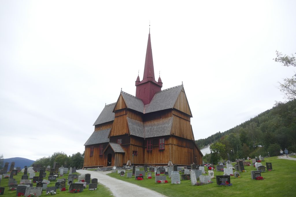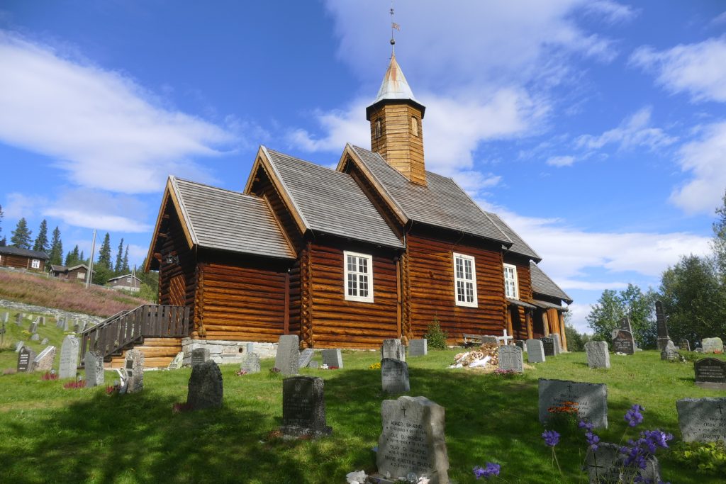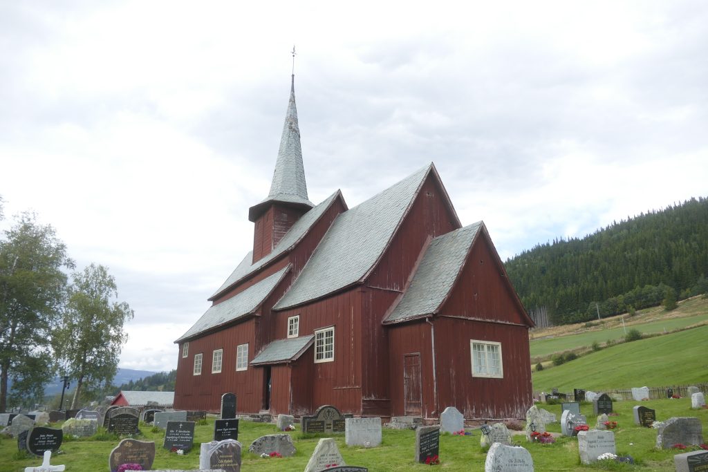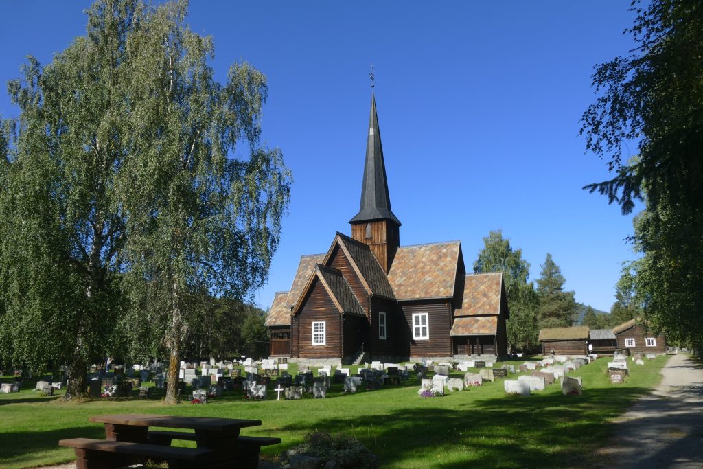Wir fahren ein Stück zurück bis Enden und biegen links ab auf die Landschaftsroute Rondane. Hier beginnt ein sehr schöner Abschnitt der Landschaftsroute auf ca. 1.000 Höhenmetern. Wir halten auf einem Wanderparkplatz gegenüber dem Muen, den wir 2023 bestiegen haben. Es sind keine Wanderschilder vorhanden, wir schauen auf der Seite UT.no und finden eine schöne Wanderung von ca. 13 km auf den 1463 m hohen Ramshøgda. Die Sonne scheint und einer Wanderung steht nichts im Wege. Vom Parkplatz gehen wir auf der Hochebene an kleinen Seen vorbei durch das Moor. Teilweise sind Schwellen ausgelegt. Wir überqueren einen Fluss und sehen schon die Ramshytta. Ab hier folgen wir dem ansteigenden Weg, den steilen Hügel hinauf. Der Ramstindan befindet sich zu unserer Linken. Der Weg ist leicht begehbar, bevor er kurz vor dem Gipfel über ein Steinfeld führt. Die ersten Steinhaufen kommen in Sicht und wir haben den Store Ramshøgda erreicht. Wir genießen die weite Rundumsicht bis hinein in die schneebedeckten Berge. Der kalte Wind lässt uns schon bald den Rückweg antreten. Wir folgen der Straße 27 bis zum Abzweig nach Ringebu, wo wir über eine abenteuerliche kleine steile Straße zur Ringebu Stavkyrkje fahren. Die Holzkirche stammt aus dem 13. Jahrhundert und ist eine der größten noch erhaltenen 28 Stabkirchen in Norwegen.