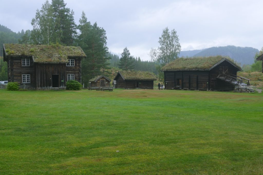Wir fahren zum kleinen Parkplatz, wo die Wanderung auf den Digergubben beginnt. Es regnet und es ist noch keine Pause abzusehen. Zwecklos, wir fahren um die Insel herum zur Fähre und setzen über nach Mordal. In Molde erledigen wir Einkäufe und fahren weiter, zuerst auf der E39 dann biegen wir auf die Fv62 ab. Am Sundalsfjorden entlang erreichen wir Sunndalsøra. Nun ist guter Rat teuer. Eigentlich sollte es jetzt in das schönste Tal Norwegens nach Innerdalen gehen, wo es eine Wanderung gibt. Wir sehen nochmal auf den Wetterbericht – Regen die nächsten Tage. Also geht es weiter auf der Fv70 durch das wunderschöne Sunndalen. Rechts und links der Straße stürzen unzählbare Wasserfälle von den fast senkrechten Felswänden. Dann weitet sich das Tal und wir klettern auf 650 Höhenmeter hinauf. Rechts der Straße sehen wir in ein fantastisches Tal hinunter. Wir fahren an uralten Bauernhäusern vorbei in Richtung Oppdal in Trollheimen. Unterwegs war kein geeigneter Parkplatz zu finden. So nehmen wir in Oppdal den Parkplatz am Sportzentrum.