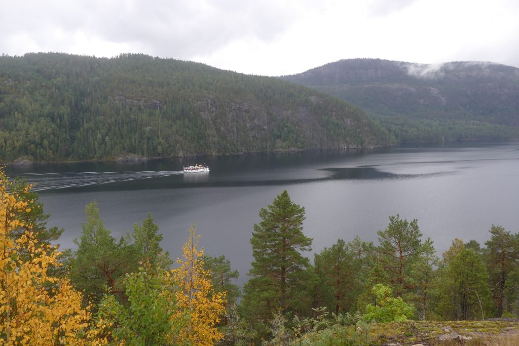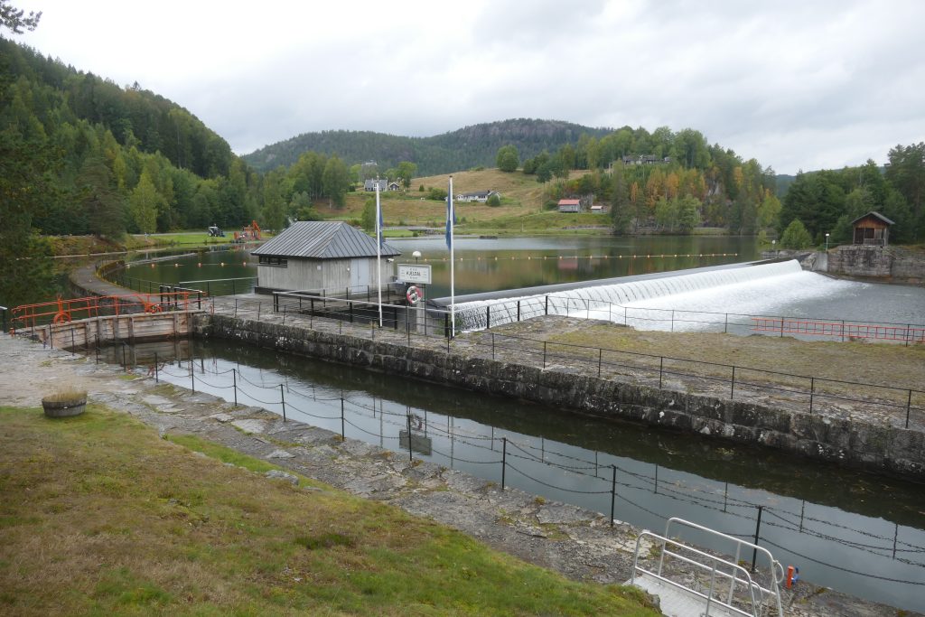 Die geplante Wanderung in Dalen durch das Höllental fällt mal wieder wegen Regen aus. Wir fahren eine kleine Straße mit 12 % Steigung hinauf in Richtung Fyresdal. Oben angekommen, hellt sich der Himmel auf und wir haben Hoffnung, dass wir heute doch noch eine Wanderung unternehmen können. Die Straße schlängelt sich entlang senkrechter Felswände. Als wir in Fyresdal ankommen, schüttet es und die Parkgebühr ist nur über VIP zahlbar. So fällt auch diese Unternehmung ins Wasser. Wir fahren ca. 20 km zurück bis Krossli und biegen auf die 38 ab. Unterwegs halten wir an einem der ältesten Freilichtmuseen des Landes, dem 1907 gegründeten Kviteseid Bygdetun. Hier bekommen wir einen Eindruck, wie ein wohlhabender Bauernhof in West-Telemark vor ca. 200 Jahren aussah. Die Flekstveitstoga, das Haupthaus stammt aus dem 17. Jahrhundert, wobei der zweite Stock 1738 angebaut wurde. Die anderen Häuser stammen aus dem 14. bis 18. Jahrhundert. Durch eine traumhafte Landschaft schlängelt sich die Straße immer entlang des Vråvatri. Die ersten gelben Birkenblätter werden vom Wind durch die Luft gewedelt. In Kjeldal kommen wir an einer Schleuse des Telemarkkanals vorbei. Er galt bei seiner Eröffnung als achtes Weltwunder. Ursprünglich wurden auf dem Kanal Güter und Personen transportiert. Auch zum Flößen von Baumstämmen und zum Schutz vor Überschwemmungen wurde er genutzt. Mit einer Länge von 105 km verbindet der Telemarkkanal die Ortschaften Skien und Dalen. Das heutige Ziel ist der kleine Ort Bø.