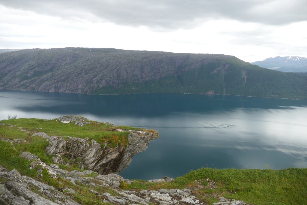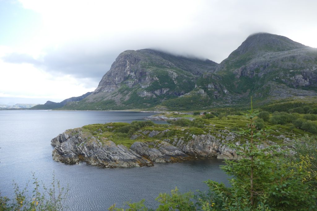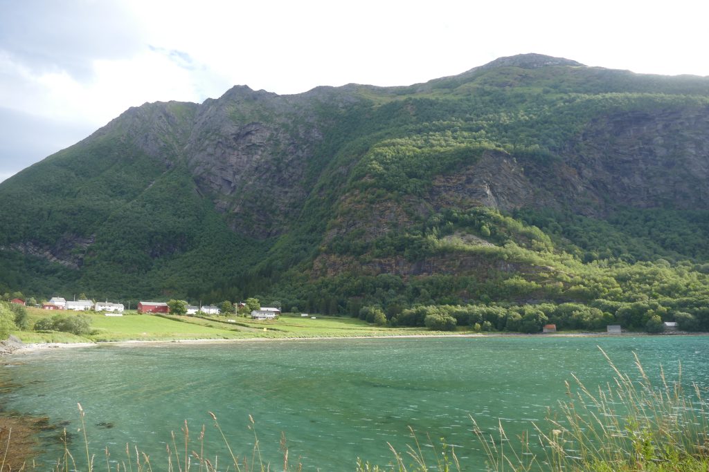 Wir verlassen unseren schönen stürmischen Platz auf der Insel Jøa und fahren zum Parkplatz an der Jøatrappa, einer Holztreppe mit 932 Stufen hinauf auf den Ramnfjellet. Hier müssen wir die Parkgebühr über eine APP bezahlen. Wir laden diese und versuchen zu bezahlen. Jedoch benötigen wir dazu ein norwegisches Konto. Schade. Also kehren wir um, fahren zur Fähre und setzen über nach Ølhammeren. Auf der 767 /769 fahren wir weiter nach Namsos, wo wir kurz unterbrechen. Dann sind wir wieder auf der Fv17 und fahren in südliche Richtung bis zum Abzweig auf die 720. Entlang des Beitstadfjorden führt die Straße durch abgelegene Orte und eine sanfte Landschaft. Warum wir eine Mautstation auf dieser schmalen und recht holprigen Straße passieren, ist unklar. Doch die Landschaft entschädigt, auch wenn durch den Regen die gegenüberliegende Seite nicht auszumachen ist. In Varrabotn nehmen wir die kleine Straße, die uns zur 755 nach Leksvik bringt. Nun fahren wir entlang des Trondheimsfjorden, bis wir direkt am Fjord einen schönen Parkplatz mit Blick auf den Fjord finden.