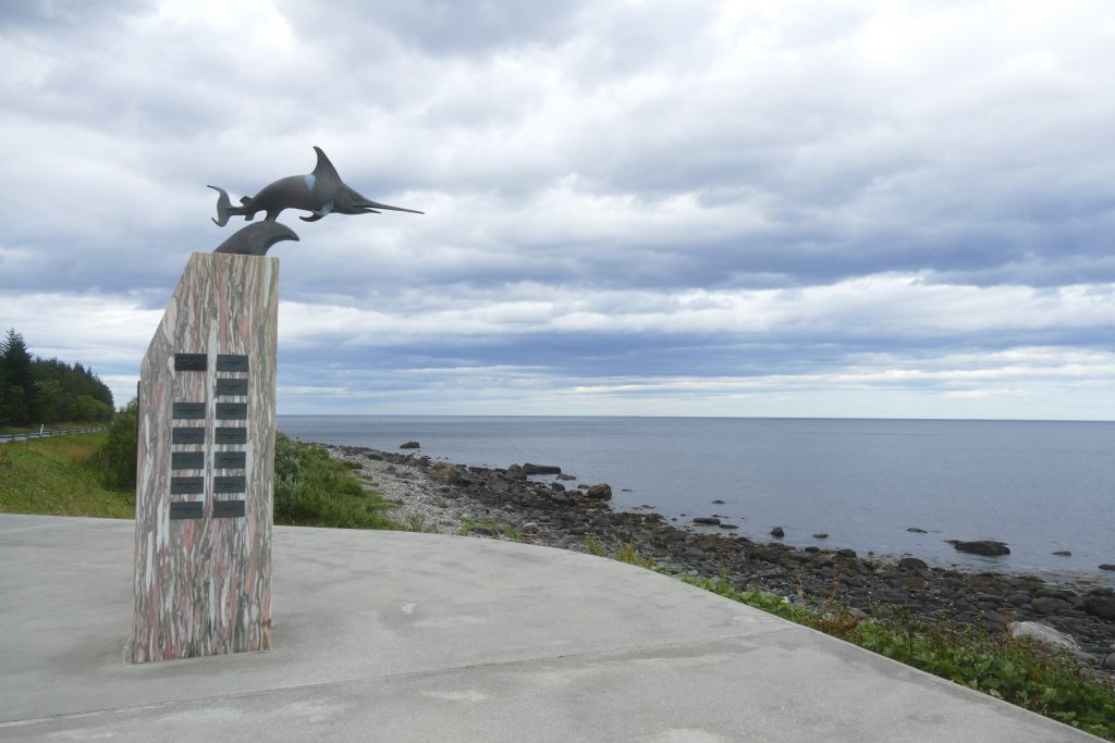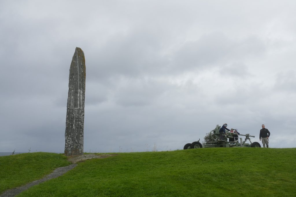 Heute fahren wir durch den 5086 m langen Freidfjordtunnelen weiter auf der 70 nach Kristiansund. Wir finden etwas außerhalb einen kleinen Parkplatz mit dem Hinweis auf eine Wanderung. Dort angekommen, schauen wir uns die Wandertafel an und sehen, dass es eine Bergwanderung an der Küste mit verschiedenen Sehenswürdigkeiten gibt. Wir beginnen auf einem befestigten Weg, der uns nach wenigen Metern zum 78 m hohen Varden, einem Aussichtsturm führt. Wir steigen hinauf und genießen den Panoramablick über Kristiansund und den Atlantik sowie auf das Fischerdorf Grip und Smøla. Es geht weiter ein Stück in Richtung Stadt und dann biegen wir auf den Wanderweg ab. Es ist ein abwechslungsreiches Wandergelände über Wurzeln und Bäume, an der felsigen Küste klettern wir über Steine. Zum Glück gibt es ab und an Seile zur Sicherung. Feuchte Stellen sind mit Holzbohlen überbrückt. An der Küste kommen wir an den deutschen Bunkern aus dem Zweiten Weltkrieg vorbei, mit herrlichem Blick auf das Meer. Dann führt der Wanderweg hinunter zum Rastplatz Klubba und die Landzunge herum nach Storhaugen. Hier wechselt die Landschaft in einen alten Wald. Wir kommen zum Friedhof Kirkelandet. Jetzt ist es nicht mehr weit bis zu unserem Parkplatz.