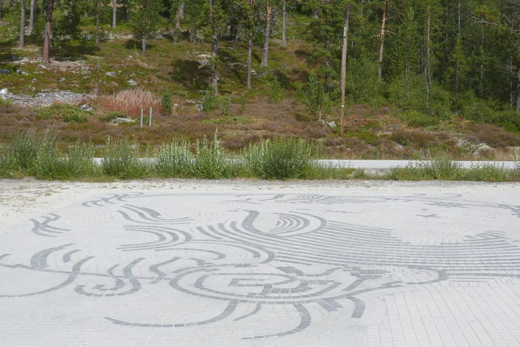 Die kälteste Nacht mit 2° C liegt hinter uns. Der Regen hat den Bergkuppen ein weißes Kleid verpasst. Wir fahren weiter zum Aussichtspunkt Sønhetta. Vom Parkplatz an der Straße müssten wir nun ca. 6 km einen Privatweg fahren, um zum Ausgangspunkt für die kurze Wanderung zum Aussichtspunkt zu gelangen. Noch ist der Himmel bedeckt und ein eisiger Wind weht. Wir verzichten auf den Aussichtspunkt und fahren auf der Staatsstraße 29 nach Folldal. Hier beginnt der Turistvegen Rondane, dem wir folgen. Erster Rastplatz ist Strømbu. Mittlerweile scheint die Sonne und wir wollen die kleine ausgewiesene Wanderung Strømburunden machen. Doch schon nach ein paar Metern müssen wir über eine Brücke, die gerade neu errichtet wird. So fahren wir unverrichteter Dinge weiter zum Rastplatz Kjøllen, mit einem großen Mosaik, das eine alte Christusdarstellung sein soll. Am Aussichtspunkt Sohlbergplassen haben wir von der Aussichtsplattform einen herrlichen Blick über den See und auf die Berge vom Rondane Nationalpark. Der Rastplatz Atnbrufossen ist geschlossen. Wir halten etwas weiter an der Rondane River Lodge, doch auch hier gibt es keine kleine Wanderung. Irgendwie ist heute der Wurm drin. Etwas abseits befindet sich die Sollia Kirke, eine schöne Holzkirche aus dem Jahr 1737. Leider ist sie verschlossen. Wir fahren ein Stück zurück Richtung Enden und parken für die Nacht an einem Rastplatz direkt am See Setningen.