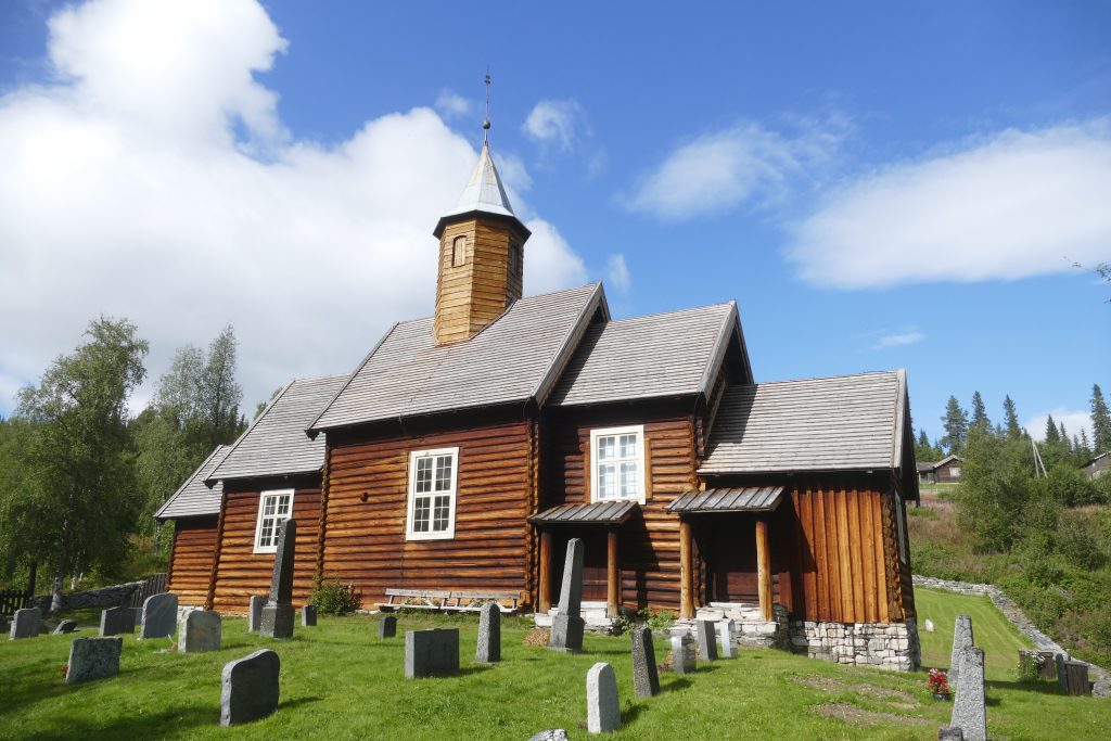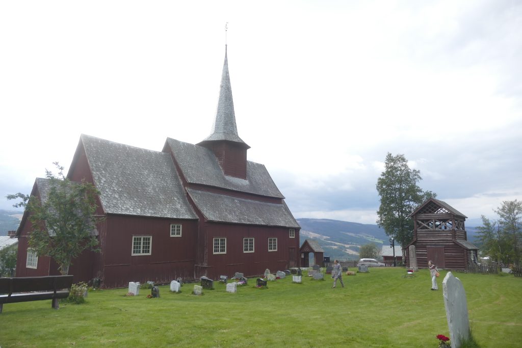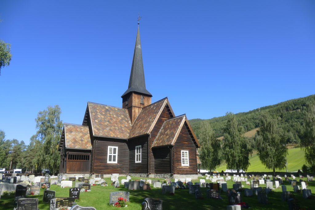 Wir fahren ein Stück zurück bis Enden und biegen links ab auf die Landschaftsroute Rondane. Hier beginnt ein sehr schöner Abschnitt der Landschaftsroute auf ca. 1.000 Höhenmetern. Wir halten auf einem Wanderparkplatz gegenüber dem Muen, den wir 2023 bestiegen haben. Es sind keine Wanderschilder vorhanden, wir schauen auf der Seite UT.no und finden eine schöne Wanderung von ca. 13 km auf den 1463 m hohen Ramshøgda. Die Sonne scheint und einer Wanderung steht nichts im Wege. Vom Parkplatz gehen wir auf der Hochebene an kleinen Seen vorbei durch das Moor. Teilweise sind Schwellen ausgelegt. Wir überqueren einen Fluss und sehen schon die Ramshytta. Ab hier folgen wir dem ansteigenden Weg, den steilen Hügel hinauf. Der Ramstindan befindet sich zu unserer Linken. Der Weg ist leicht begehbar, bevor er kurz vor dem Gipfel über ein Steinfeld führt. Die ersten Steinhaufen kommen in Sicht und wir haben den Store Ramshøgda erreicht. Wir genießen die weite Rundumsicht bis hinein in die schneebedeckten Berge. Der kalte Wind lässt uns schon bald den Rückweg antreten. Wir folgen der Straße 27 bis zum Abzweig nach Ringebu, wo wir über eine abenteuerliche kleine steile Straße zur Ringebu Stavkyrkje fahren. Die Holzkirche stammt aus dem 13. Jahrhundert und ist eine der größten noch erhaltenen 28 Stabkirchen in Norwegen.