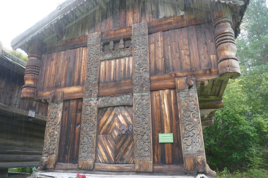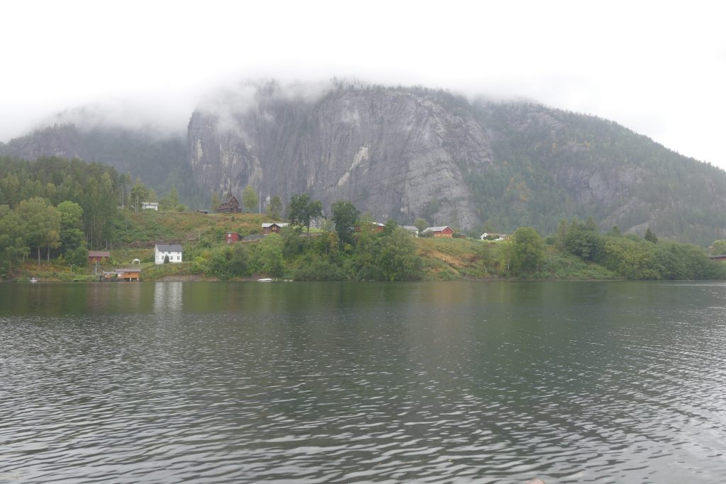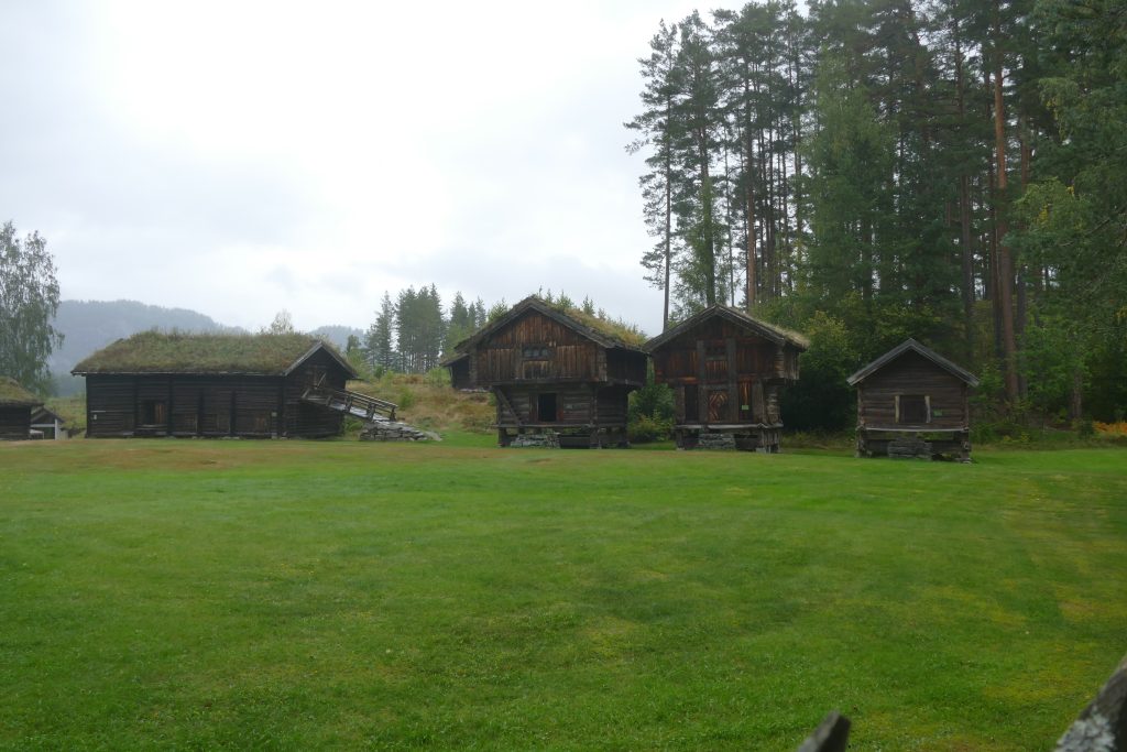 Die geplante Wanderung in Dalen durch das Höllental fällt mal wieder wegen Regen aus. Wir fahren eine kleine Straße mit 12 % Steigung hinauf in Richtung Fyresdal. Oben angekommen, hellt sich der Himmel auf und wir haben Hoffnung, dass wir heute doch noch eine Wanderung unternehmen können. Die Straße schlängelt sich entlang senkrechter Felswände. Als wir in Fyresdal ankommen, schüttet es und die Parkgebühr ist nur über VIP zahlbar. So fällt auch diese Unternehmung ins Wasser. Wir fahren ca. 20 km zurück bis Krossli und biegen auf die 38 ab. Unterwegs halten wir an einem der ältesten Freilichtmuseen des Landes, dem 1907 gegründeten Kviteseid Bygdetun. Hier bekommen wir einen Eindruck, wie ein wohlhabender Bauernhof in West-Telemark vor ca. 200 Jahren aussah. Die Flekstveitstoga, das Haupthaus stammt aus dem 17. Jahrhundert, wobei der zweite Stock 1738 angebaut wurde. Die anderen Häuser stammen aus dem 14. bis 18. Jahrhundert. Durch eine traumhafte Landschaft schlängelt sich die Straße immer entlang des Vråvatri. Die ersten gelben Birkenblätter werden vom Wind durch die Luft gewedelt. In Kjeldal kommen wir an einer Schleuse des Telemarkkanals vorbei. Er galt bei seiner Eröffnung als achtes Weltwunder. Ursprünglich wurden auf dem Kanal Güter und Personen transportiert. Auch zum Flößen von Baumstämmen und zum Schutz vor Überschwemmungen wurde er genutzt. Mit einer Länge von 105 km verbindet der Telemarkkanal die Ortschaften Skien und Dalen. Das heutige Ziel ist der kleine Ort Bø.
