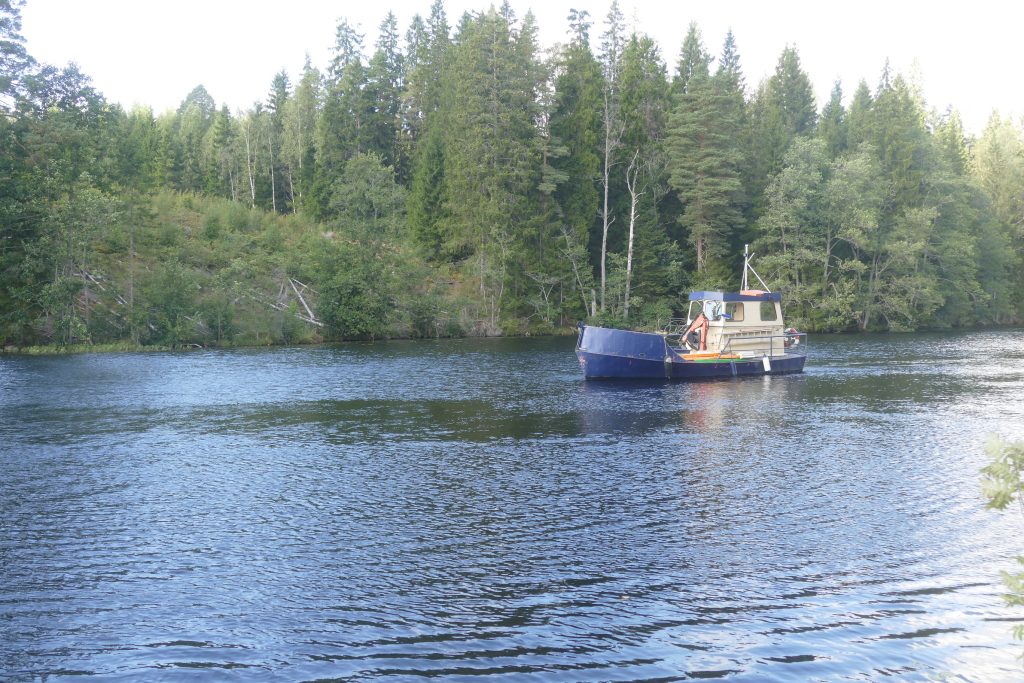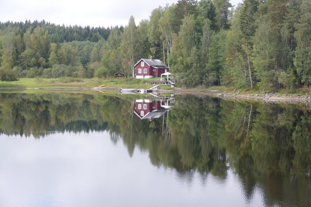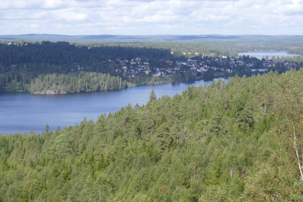 Unsere Fahrt geht weiter nach Bengtsfors. Wir parken am Bahnhof, wo man auch mit der Draisine fahren kann. Zuerst besichtigen wir den Gammelgården, West Schwedens größtes Freilichtmuseum. Von hier aus beginnt der Brända Berget-Wanderweg, ein wunderschöner Wanderweg im hügeligen Waldgebiet rund um den Bengtsbrohöljen-See, den wir unternehmen wollen. Wir wandern durch den Wald und kommen zu zwei Rastplätzen mit herrlicher Aussicht auf Bengtsfors und den See Bengtsbrohöljen. Wir nehmen auch die zusätzliche Schleife von ca. 2 km und kommen hinunter zu einer Schleuse am Dalsland Kanal. Der Weg führt nun direkt am Ufer des Sees entlang bis zu zwei weiteren Schleusen, wo wir wieder auf unseren Hauptweg treffen. Dann führt der Weg vom südlichen Ende von Höljerud auf der Lelångenbanan zurück nach Bengtsfors. Nach einer Pause wollen wir weiterfahren. Kommen jedoch nur bis zum Ende von Bengtsfors. Hier stehen wir eine gefühlte Ewigkeit in einem Stau und beschließen heute nur noch bis Linderud zu fahren.