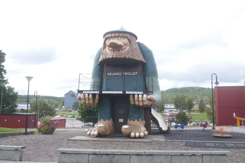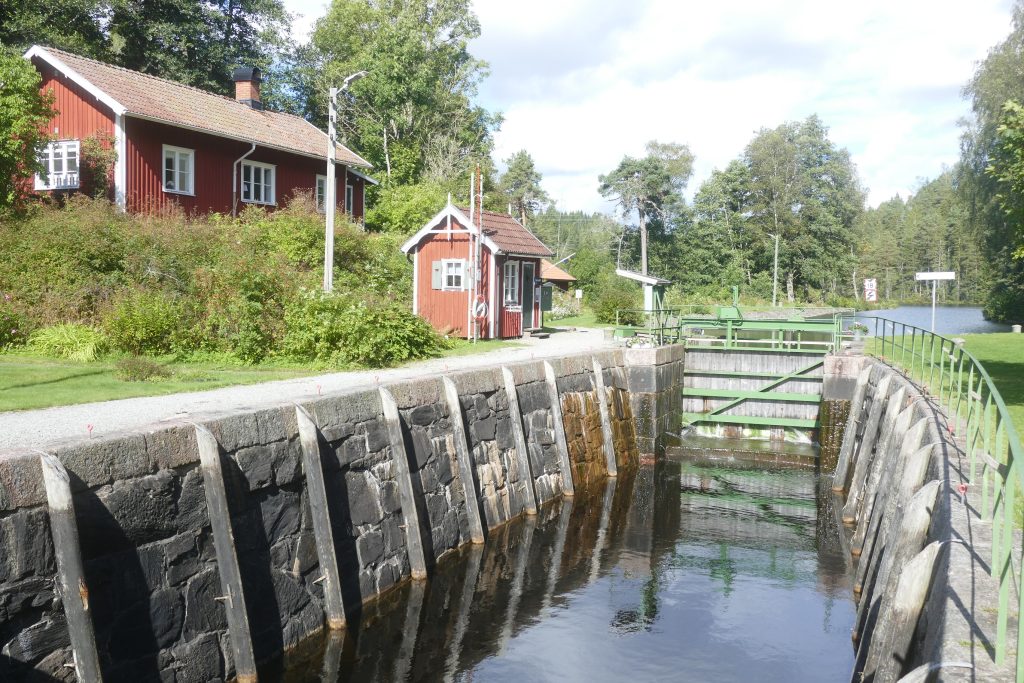Noch haben wir den Regen nicht hinter uns gelassen, als wir weiter in Richtung schwedischer Grenze fahren. In Ørje können wir nochmal entsorgen, dann sind wir auch gleich über der Grenze. Wir unterbrechen die Fahrt in Töcksfors am nördlichsten Teil des Dalsland-Kanals. Die Schleusenstation, die wir uns ansehen, liegt 112 m über dem Meeresspiegel und ist Schwedens höchster Kanal, der Verbindung zum Meer hat. Die Schleuse ist eine Einzelschleuse, die einen Höhenunterschied von 5,1 m überwindet. Der Stora Lee-Östen-Kanal verbindet die Seen Foxen mit Töck und Östen und wurde 1915 eingeweiht. Dann fahren wir weiter nach Årjäng wo es einen riesigen Troll und ein schönes Graffiti zu bewundern gibt. Für den Rückweg zum Parkplatz nehmen wir den Silbodalsälven, einen kleinen Naturstieg durch urwüchsige Natur. Da uns der Parkplatz in Årjäng zu laut ist, fahren wir weiter nach Gustavsfors.