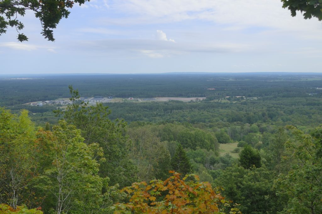Das heutige Ziel ist zuerst Vänersborg, wo wir schon mehrmals waren. Deshalb gehen wir nur in ein Shoppingcenter, um unsere Handys zu aktualisieren. Dann fahren wir auf den Halleberg, wo es die beste Möglichkeit gibt, Elche in freier Natur zu beobachten. Jedoch nicht, wenn wir kommen. Doch eigentlich wollen wir hier den Gaddisleden erwandern. Statt Elchen sehen wir Geologie in verschiedenen Formen. Der Weg geht durch Laubwald, am äußeren Rand des Bergplateaus entlang. Wir kommen an einem Kalksteinbruch mit einer Kalkhöhle vorbei und gelangen zum Badeplatz Gaddesanna. Den Abstecher zum Kalkugn, wo sich noch Überreste von alten Kalköfen nehmen wir auch noch mit, bevor wir zum Hallesnipen wandern. Hier werden wir am Predikstolen, wo der Plateauberg Halleberg auf den Binnensee Vänernsee trifft, mit einer herrlichen Aussicht belohnt. Dann fahren wir in östliche Richtung weiter bis nach Skara, dem ältesten Bistum in Schweden.