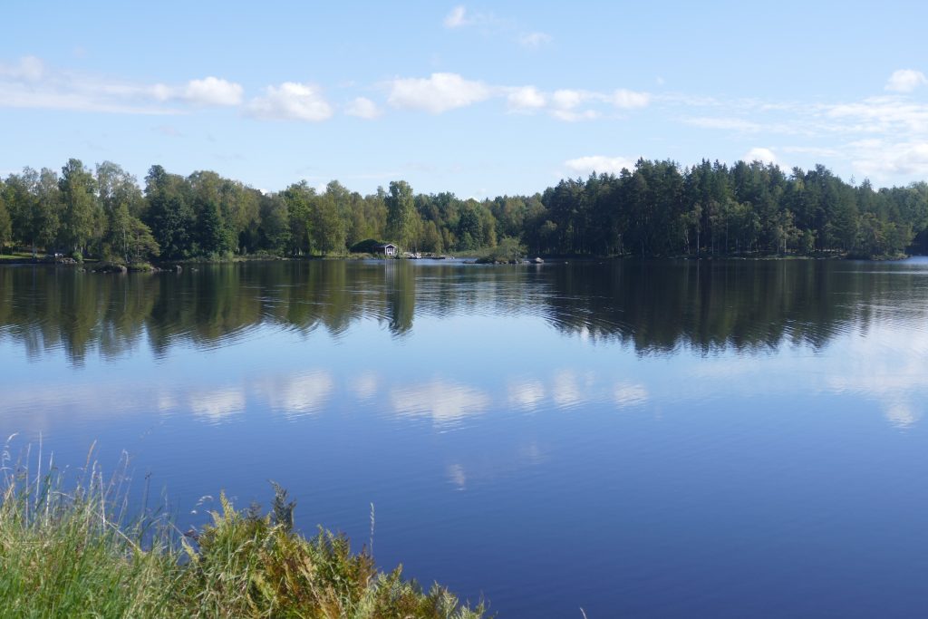 Da wir gestern doch weiter gefahren sind als geplant, wollen wir heute noch eine Wanderung unternehmen. Am Morgen liegt Nebel über der Landschaft. Wir fahren nach Växjö und wollen uns, nachdem wir einkaufen waren, den Dom ansehen. Doch die Parkplatzsuche gestaltet sich etwas kompliziert, da mal wieder ein APP geladen werden muss. So fahren wir weiter in das Kulturreservat Linnés Råshult in Älmhult. Hier haben wir uns für den Diöslingan, einen der drei Schleifen des Wanderweges Eastern Furniture, entschieden. Wir wandern auf dem Linnaeus Kirchenweg bis Stenbrohult und an der alten Kirche vorbei. Der Diöslingan verläuft von Stenbrohult im Süden bis Djö im Norden über Råshult und Tångarne. Wir wandern zuerst auf einem Schotterweg und später auf einem schönen Waldweg zwischen Soganässjön und Möckeln. Einen Abstecher machen wir in das Naturschutzgebiet Östra Tångarne und kommen durch Djö. Zum Ende des Weges sehen wir uns noch das Kulturreservat Linnaeus Råshult, wo 1707 der Blumenkönig Carl von Linné geboren wurde, an. Hier kann man sehen, wie die Menschen zu Beginn des 18. Jahrhunderts die Natur gestaltet und genutzt haben. Nach der Wanderung fahren wir weiter nach Osby, wo es einen herrlichen Stellplatz am See gibt.