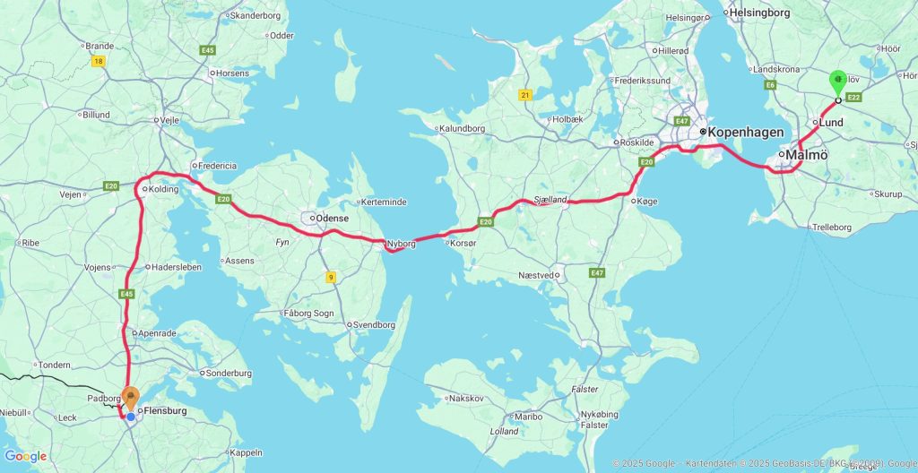 Heute soll es wieder zurück nach Deutschland gehen. Wir kommen sehr gut durch Dänemark voran und sind schon um 14.30 Uhr nach 380 km Fahrt in Flensburg.