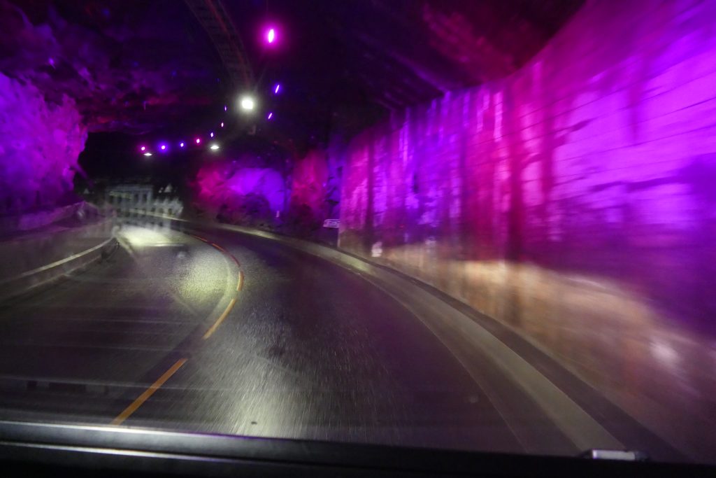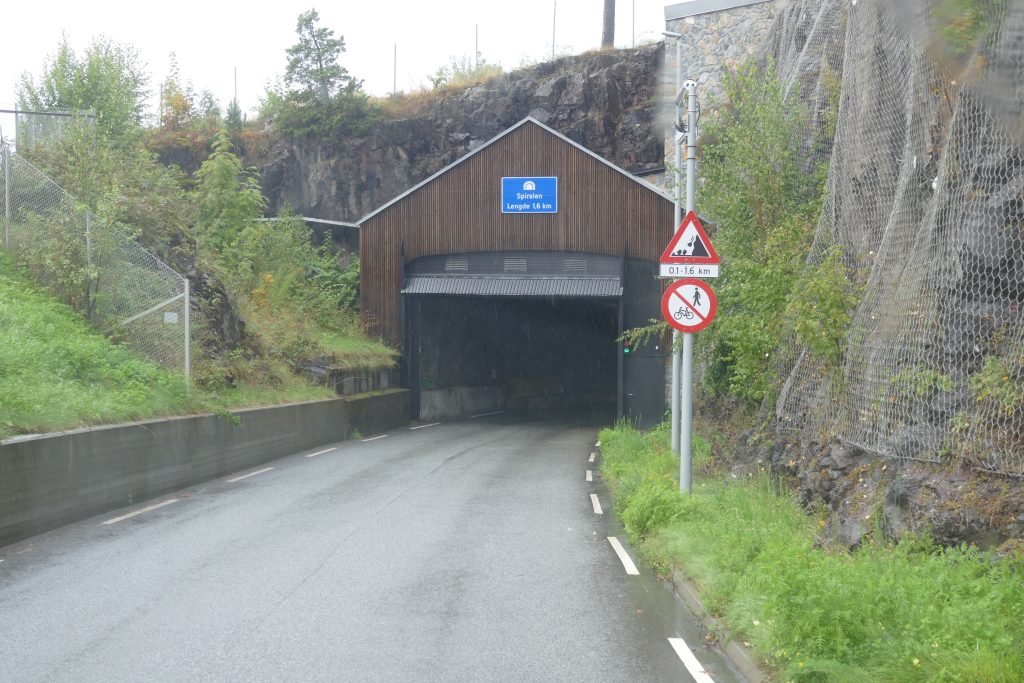 Auch die für heute geplante Wanderung zum markanten Felsen Gygrestolen fällt ins Wasser. Es will einfach nicht aufhören zu regnen. Wir geben uns geschlagen und beschließen nach Schweden zu fahren. Doch zuerst schließen wir die Runde durch die Region Telemark ab und fahren über Notodden, Kongsberg und Hokksund nach Drammen zum berühmtesten Wahrzeichen der Stadt. In den Berg Bragernesåsen wurde ein Spiraltunnel mit sechs Kehren auf einer Länge von 1650 m getrieben. Er überwindet 163 Höhenmeter bis auf dem Spiraltoppen und wurde 1961 eingeweiht. Wir passen eine kurze Regenpause ab, um einen Blick auf Drammen zu werfen. Dann fahren wir weiter auf der E134 und passieren den Oslofjordtunelen mit 7,1 km Länge. Hinter Drøbak überqueren wir die E6 und wir sehen nach Tagen mal wieder die Sonne bei 22° C. Einen Stellplatz finden wir in Askim bei der Askimungdomsskole.