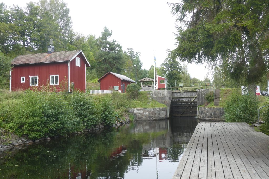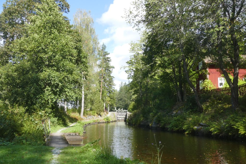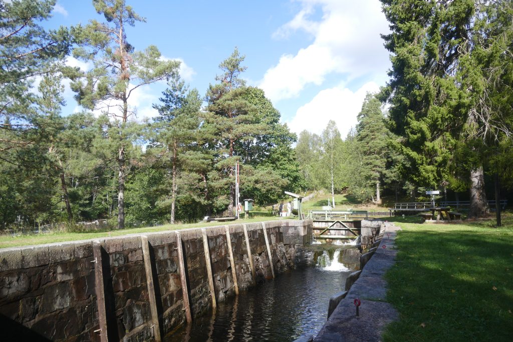 Noch haben wir den Regen nicht hinter uns gelassen, als wir weiter in Richtung schwedischer Grenze fahren. In Ørje können wir nochmal entsorgen, dann sind wir auch gleich über der Grenze. Wir unterbrechen die Fahrt in Töcksfors am nördlichsten Teil des Dalsland-Kanals. Die Schleusenstation, die wir uns ansehen, liegt 112 m über dem Meeresspiegel und ist Schwedens höchster Kanal, der Verbindung zum Meer hat. Die Schleuse ist eine Einzelschleuse, die einen Höhenunterschied von 5,1 m überwindet. Der Stora Lee-Östen-Kanal verbindet die Seen Foxen mit Töck und Östen und wurde 1915 eingeweiht. Dann fahren wir weiter nach Årjäng wo es einen riesigen Troll und ein schönes Graffiti zu bewundern gibt. Für den Rückweg zum Parkplatz nehmen wir den Silbodalsälven, einen kleinen Naturstieg durch urwüchsige Natur. Da uns der Parkplatz in Årjäng zu laut ist, fahren wir weiter nach Gustavsfors.